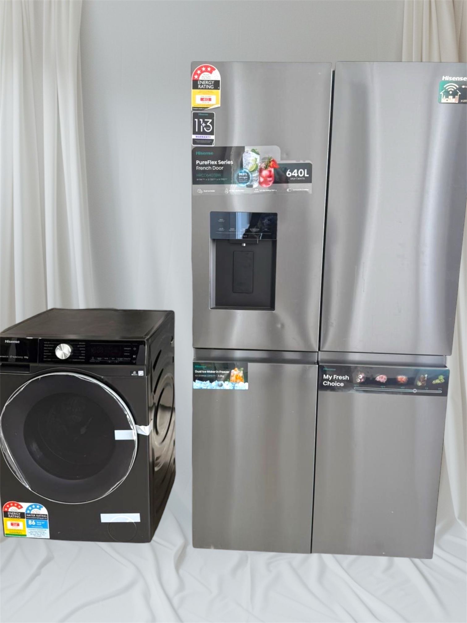 HISENSE 640 LITRES FRIDGE & HISENSE 10KG WASHING MACHINE